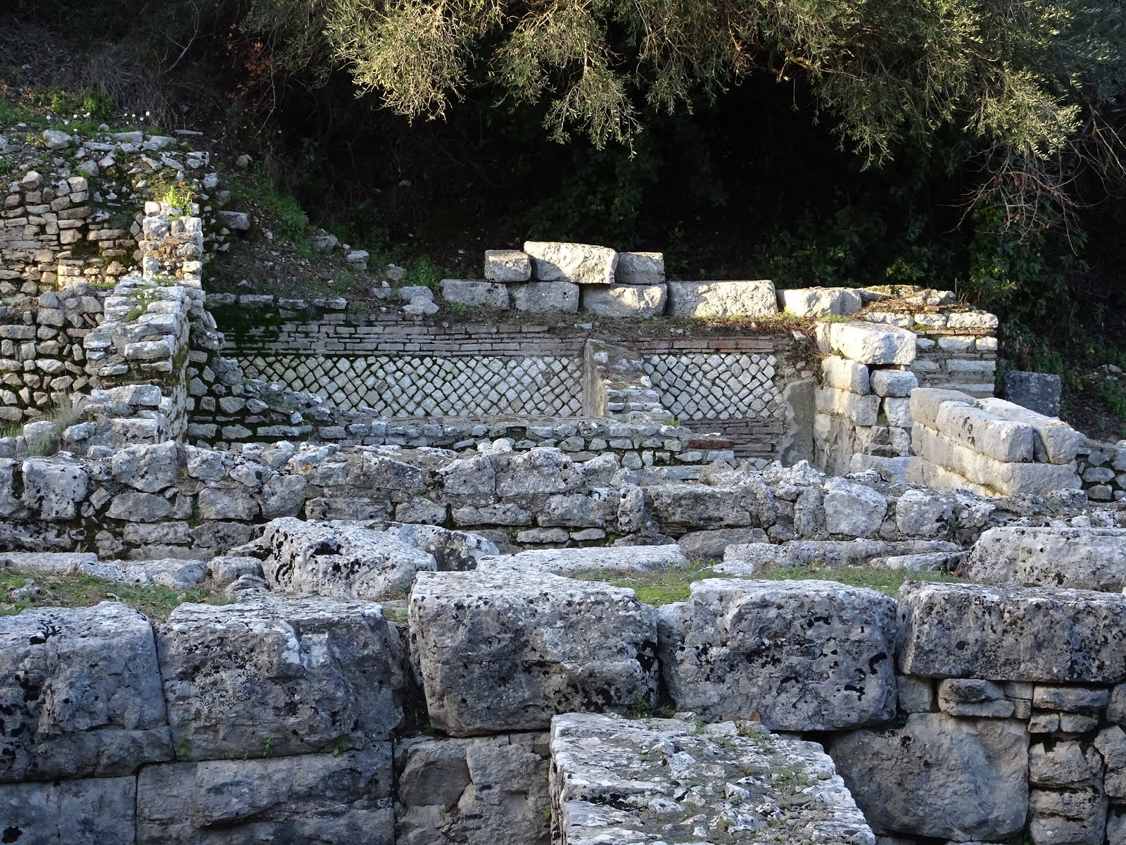Una mica mes enllà hi ha la basílica paleocristiana. No sé si és aquí on venien els batejats o en una altra església. Curiosament aquesta església tot i ser molt gran i bonica no la feia servir l’episcopat de Butrint, ja que contenia tombes que no estaven autoritzades segons les normes d’aquella època. Es pensa que s’utilitzava pels funerals i també com a santuari dedicat als màrtirs. La gent que visitava la ciutat s’apropava fins aquí a visitar aquestes tombes.