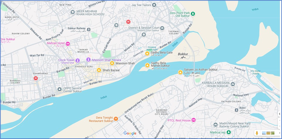 visitem pels voltants, he posat un parell de mapes. Sukkur està a una riba de